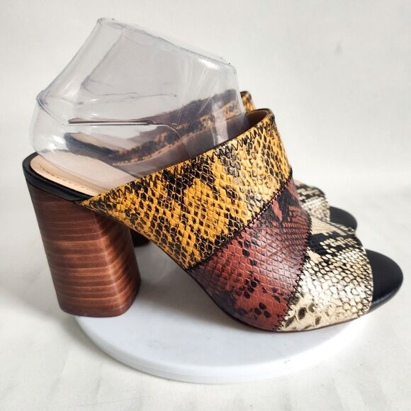 Gibson Latimer Snakeskin Goat Leather Size 9 Open Toe Block Heels Brown Yellow
