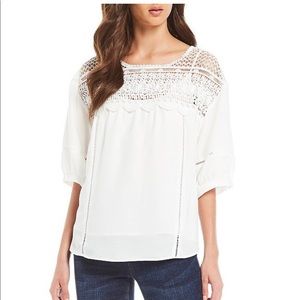 Brand new! Beautiful lace detail. 100 percent poly. Tank top liner underneath.