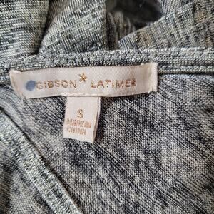 Gibson & Latimer Women Gold Metallic Sheer Knit Top V-Neckline Zipper Detail Small