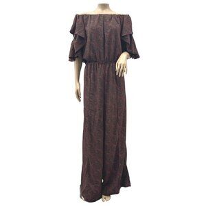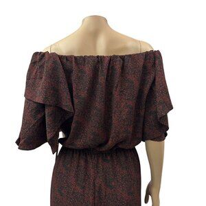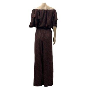 Tags: red jumpsuit,  black jumpsuit,  Gibson & Latimer,  ruffle jumpsuit,  women's jumpsuit,  size 10 jumpsuit,  wide-leg jumpsuit,  patterned jumpsuit,  elegant jumpsuit,  stylish jumpsuit,  off-shoulder jumpsuit,  elastic waist jumpsuit,  breathable fabric jumpsuit