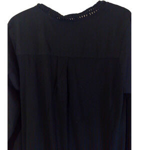 Gibson Latimer Women Sz L Black Macrame Jersey Back Long Sleeve Button Top