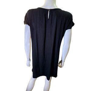 The Gibson Latimer Women's Embroidered Black Bohemian Floral Colorful Dress in size M is a stylish and versatile piece perfect for various occasions such as travel, party, casual wear, work, and business. This tunic dress features a round neckline, short puff sleeves, and a relaxed fit, made from light and comfortable rayon fabric. The black dress is adorned with colorful floral embroidery, adding a vibrant and unique touch to the overall design. Perfect for all seasons, this dress is a must-have for any fashion-forward woman's wardrobe.