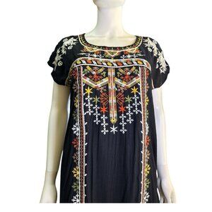Gibson Latimer Womens Embroidered Black Bohemian Floral Colorful Dress Sz M EUC