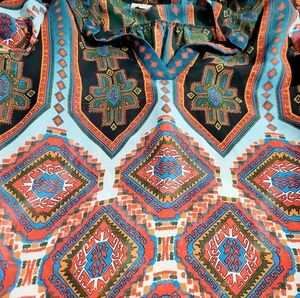 Style: Boho/Geometric print tunic, sheer, pullover style