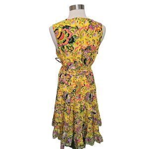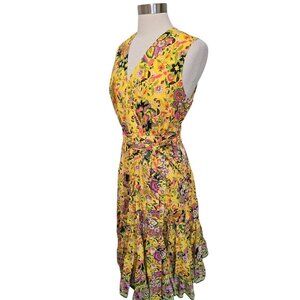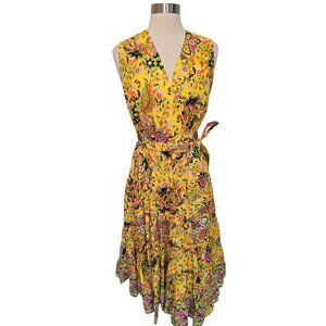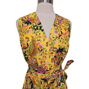 Gibson Latimer Wrap Midi Dress Womens Size Large Yellow Floral Print Tie Waist