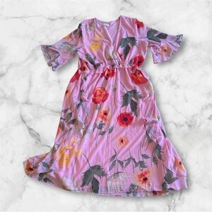 Gibson Latimer pink floral maxi dress size XL ruffles sleeve