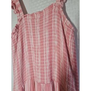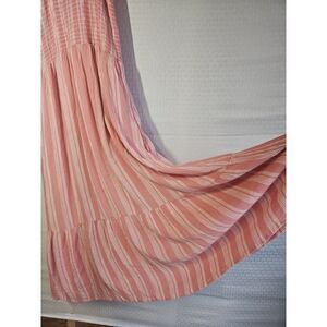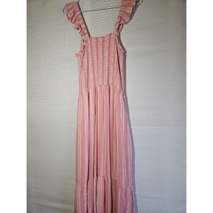 This beautiful dress from GibsonLook is perfect for any occasion, whether it's a wedding, casual day out, or even for workwear. The dress features a striped pattern, smocked accents, and a ruffle hem, making it a stylish and comfortable choice.
