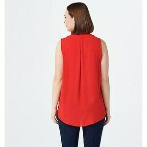 Features: crossover surplice style, open V-neckline held closed with a snap, hi-low design, fully lined, sleeveless Fit: relaxed fit; generously cut with maximum wearing ease Length: missy length 25-3/4" to 28-1/4"; plus length 28-3/4" to 29-3/4" Content: 100% rayon Care: hand wash, lay flat This is a Gibson Look fit, not a QVC fit Imported
