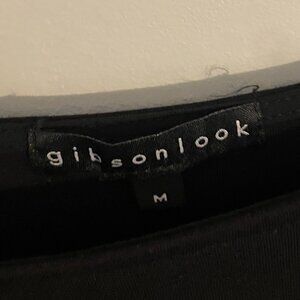 Gibson Look - Long Sleeve Black Square Neck Top - Sheer Sleeves