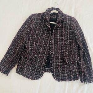 Multi colored tweed blazer. Like new. Maroon, white, black. Size M