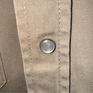 Pearl snap closures on the front placket and flap pockets.