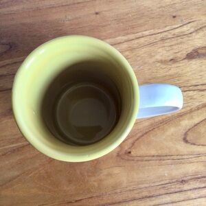 This Gibson mug, in a delightful yellow and cream palette, is a charming addition to any dining experience. Its classic cylindrical shape and comfortable handle make it perfect for savoring your favorite drinks. The mug's rustic appeal enhances the ambiance of a country-style dining setting. This colorful mug measures approximately 4 1/2” tall, 4 3/4” wide including the handle. Great pre-owned condition. No chips, cracks or repairs. Smoke free home.