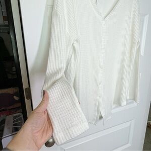 Brand new with tags. Waffle knit thermal button front V-neck top. Slouchy, oversized fit. Neutral off white color.
