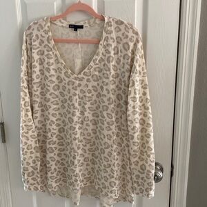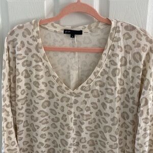 Gibson Nordstrom V-Neck Tunic Top in Oatmeal Animal Print size small