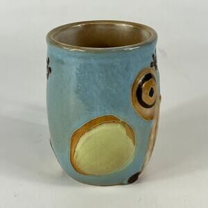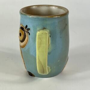 Title: Gibson Owl Coffee Mug Hand Painted Blue Green Bird Stoneware Glazed Character Tea