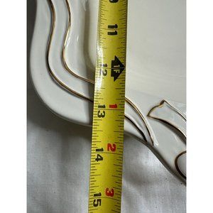 Gibson Serving Tray Platter Cheese Turkey Cookies White Gold Bow Trim Handles