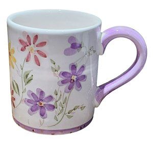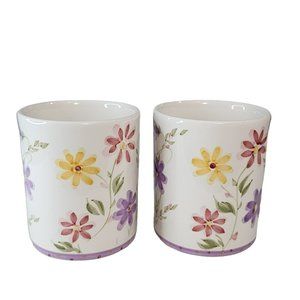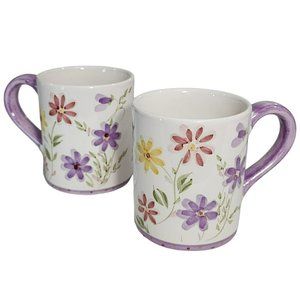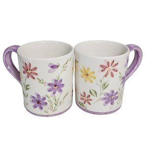 Gibson Set Of Two Shabby Chic Hand Painted Floral Design Ceramic Coffee Mug 14oz