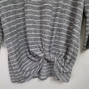 Gibson Twist Front Knot Heather Gray Stripe 3/4 Sleeve Crew Neck Tunic Top Blouse Size XS, Fabric is a little Stretchy.