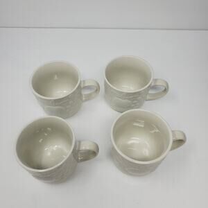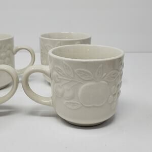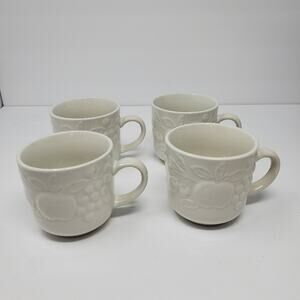 Gibson USA Everyday China Coffee Cups White Embossed Raised Fruit Set of 4