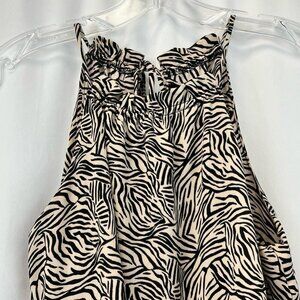 Gibson Womens Jumpsuit Beige/Black Zebra Print Halter Blouson Tie Crepe PXS