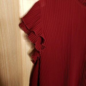 Gibson women’s plus maroon accordion cap sleeve blouse 3X. Gently used condition, care tag is missing. Measurements are: 28” from shoulder to hem, and 32 ½" from armpit to armpit.
