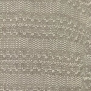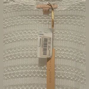 Elegant white sweater by Gibson. Features intricate knit design. Perfect for layering.