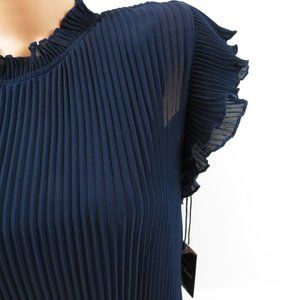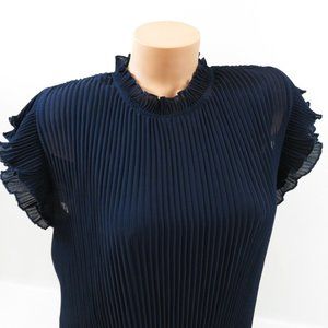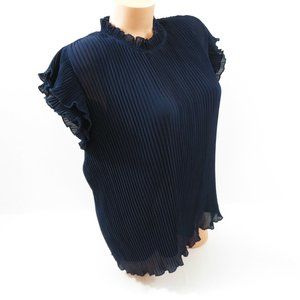 Gibson X Glam Steph Taylor Jackson Blouse Pleated Chiffon Ruffle Sleeve Blue