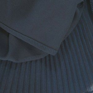 This chiffon blouse is chic and versatile complete with ruffles and pleats.