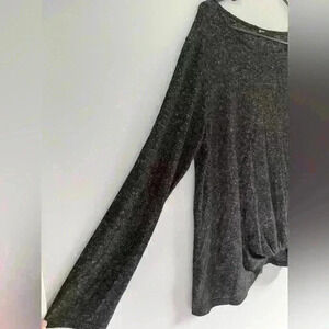 GUC. Really soft with lots of stretch. Knotted bottom detail. Heathered black color