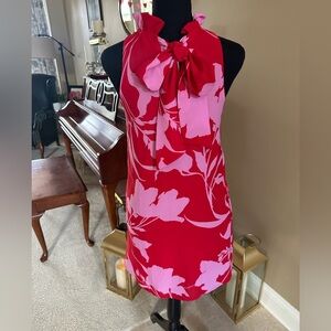 Gibson x Hi Sugarplum! Cavallo Dress Red Pink Ruffle Tie Neck Mini Dress
