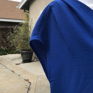 Fashioned with fit-forgiving drape, a faux wrap top with everyday versatility is cut from lightly textured crepe.