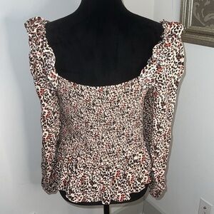 Gibson⭐️Latimer animal print brown tan hues smocked blouse long sleeves top Sz L