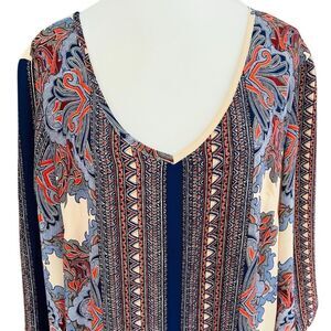 Gibson Latimer paisley with a border print shift style v neck dress M.