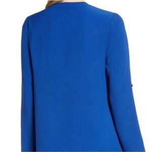 NWT tab sleeve blue tunic Size: petite small Polyester and spandex 36" bust 24" length A534