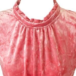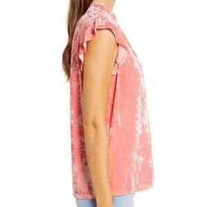 Gibsonlook Flutter Sleeve Ruffle Neck Crushed Velvet Top Sz Small in Coral NWT
