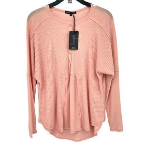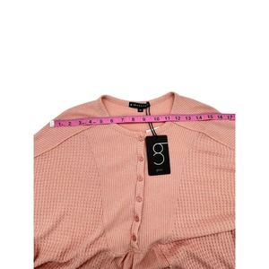 $50 GIBSONLOOK MIXED RIB WAFFLE-KNIT HENLEY LONG SLEEVE SHIRT BLUSH PINK SIZE X-SMALL
