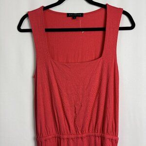 Gibsonlook S Coral Red Fitted Waist Sleeveless Square Box Neck Ruched Dress Midi