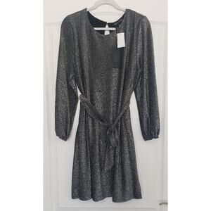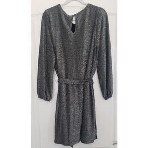 Brand new with tags Gibsonlook Sparkle Knit Blouson Sleeve Dress fully lined. Shimmer your way to any type of soiree wearing this silver sparkle knit dress set with graceful blouson sleeves and tie waist. Measurements lying flat pit to pit 20" and length 38"