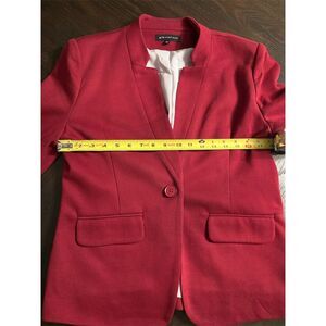 Keywords: red blazer, Gibsonlook, women's Blazer, tailored fit, notch lapel, Long Sleeve, single-breasted, one-button, professional wear, dinner party, pre-owned blazer.