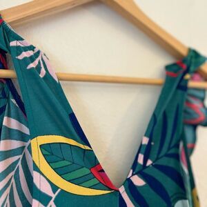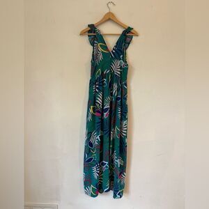 Nordstrom Gibsonlook ruffle front maxi dress in green with palm print