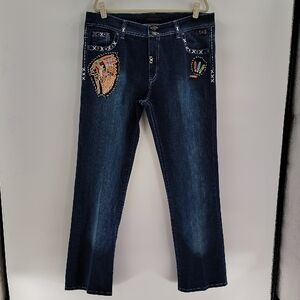Giddy Up Glamour Native American headdress bootcut jeans 14 stretch embroidery