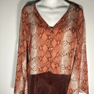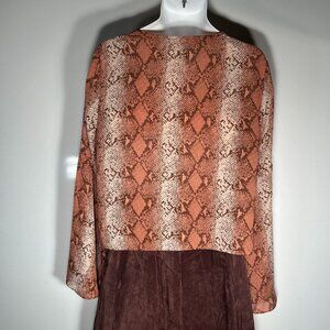 Giddy Up Glamour SZ L Mocha & Rust Snakeskin Top Boho Animal Timeless