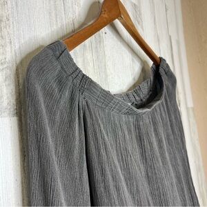 Giddy Up Glamour Womens Gray Flowy Bell Sleeve Crinkle Peasant Top Size Medium
