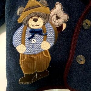 Dark blue Giesswein jacket with embroidered bears. No rips, stains, tears or holes.