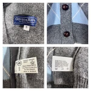 Gieves & Hawke Pure New Wool Button Down Knit Argyle Cardigan Vest Size S