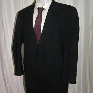 Gieves & Hawkes Henry Vintage Dark Blue Striped Two Button Suit 42R