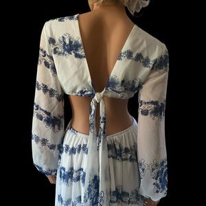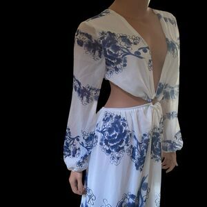 Giffniseti Floral Dress Boho Travel Cut Out Bishop Sleeve Ruffle Flounce Hem XL