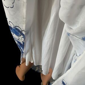 The Giffniseti Floral Leopard Dress is a long-sleeved, A-line dress made of chiffon polyester. It features a plunging V-neckline, tie closure, and bishop sleeves. The dress is accented with ruffles, flounces, cutouts, and tiered details. It is available in size XL and is suitable for various occasions. The dress is designed with a blue and white floral pattern and has a balloon sleeve type. It is also lightweight and has a flounce hem, all-over print, cutout, and vintage-inspired themes such as the 70s, 80s, and 90s.