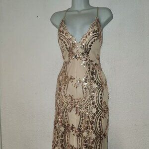 Giffniseti Gorgeous sequined gown, Gold and flesh in size Medium NWT
