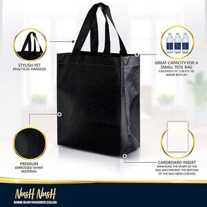 Gift Bags Medium Size– Set of 12 Shiny Black Reusable Gift Bags With Handles